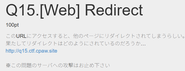 問題文のリンクを踏んでもなぜか違うURLに転送される。リダイレクト先を確認するコマンドが分からなかったのでググった。curlコマンドだった。