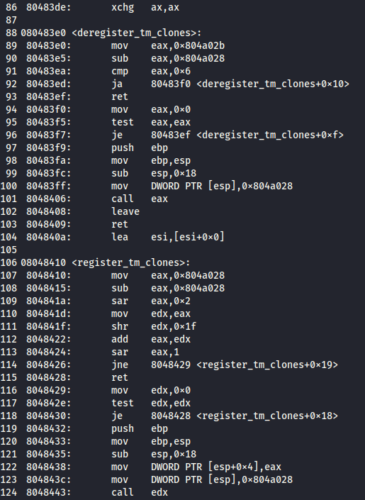 そんなこんなでodjdumpコマンドをVM上(OS:Kalilinux)で実行したら機械語を人間にも分かるようにしてくれました。