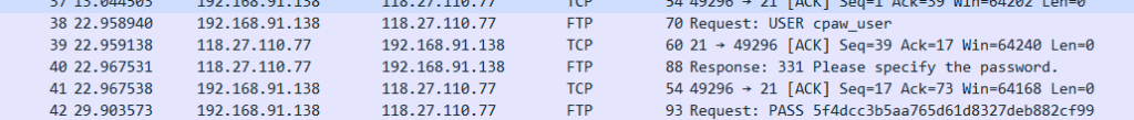 内容的にTFTPでなく、FTP(平文通信)という通信をしていることが分かった。