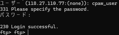 自宅のNASとしかコマンドプロンプトでFTP通信したことなかったから知らなかった。