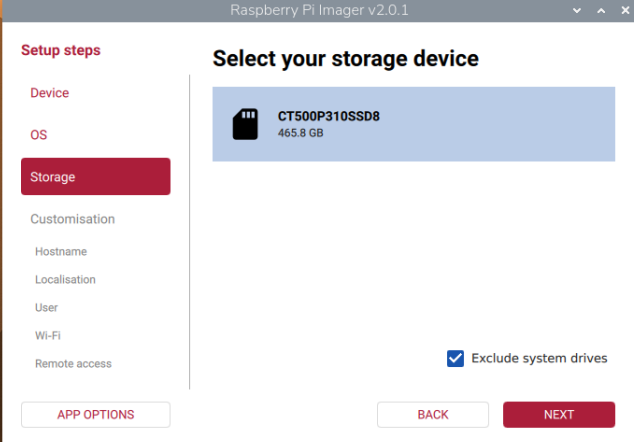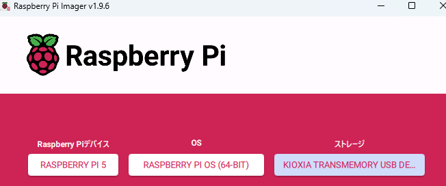 ラズパイにリモートで入れたので、ラズパイイメージャからSSDをブートデバイスにする。