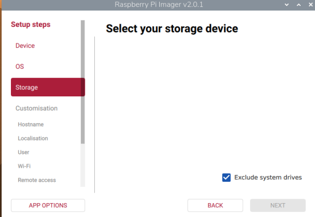 ラズパイイメージャでOSを作るが、二回やる必要がありそう。