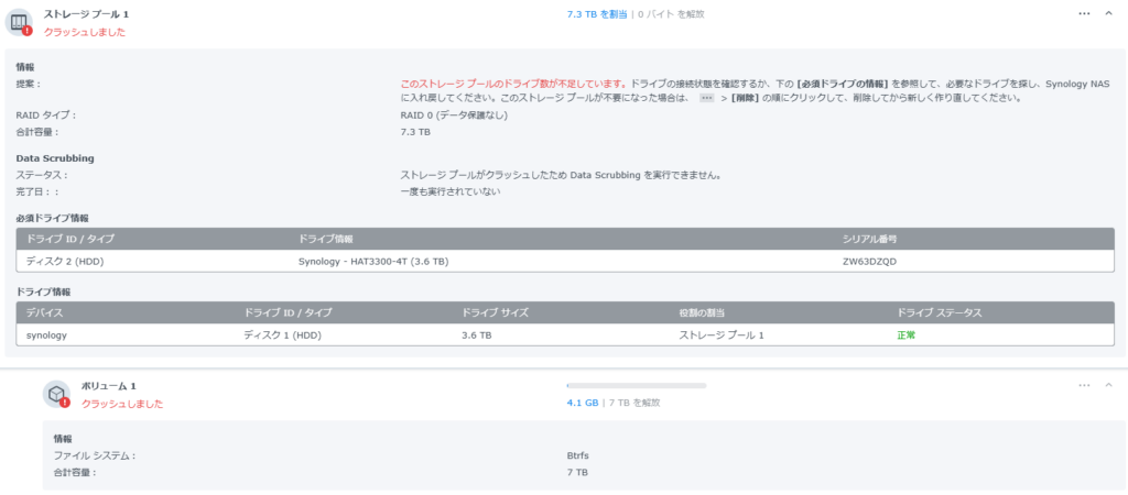 複数ディスクに書き込まれなかったということだろうか?まあRAIDはクラッシュしてたからヨシ!
