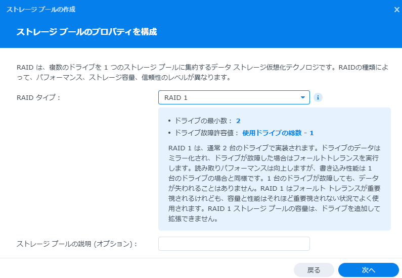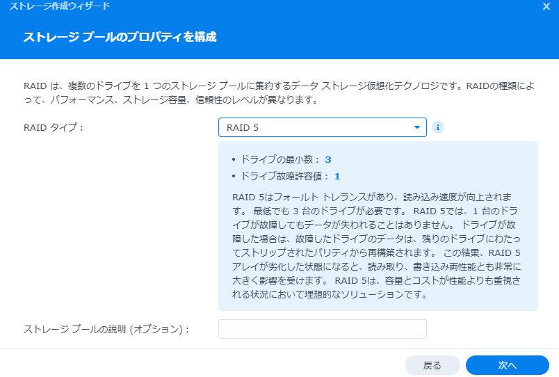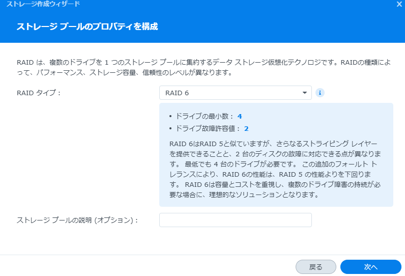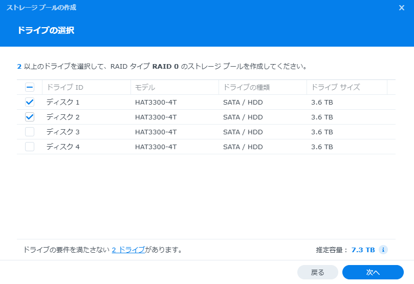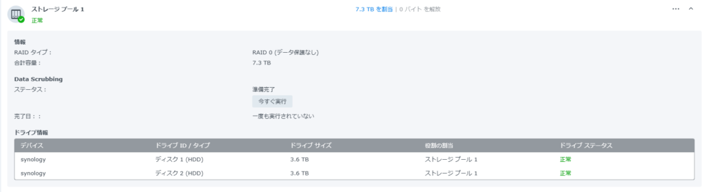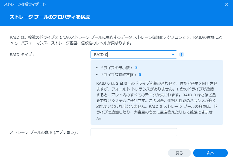 とりあえずRAID0でストレージプールを作成