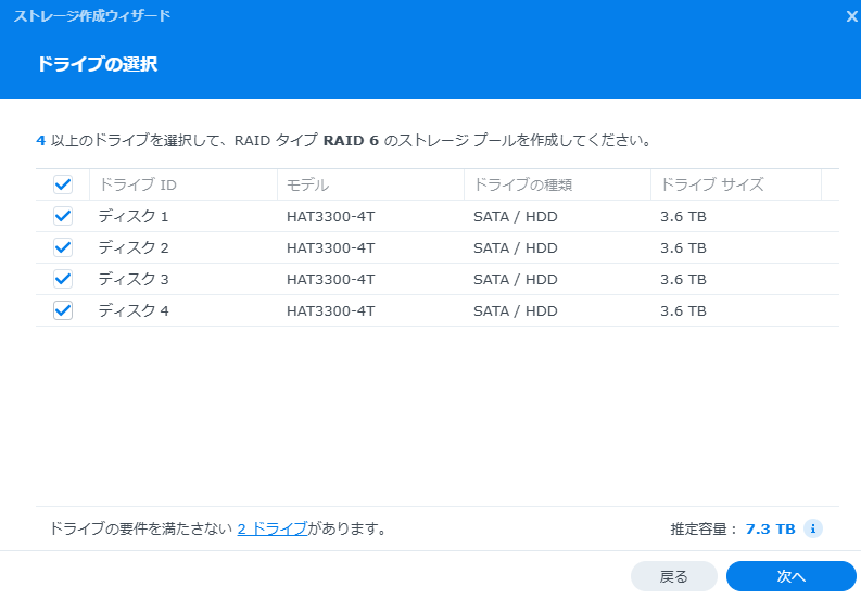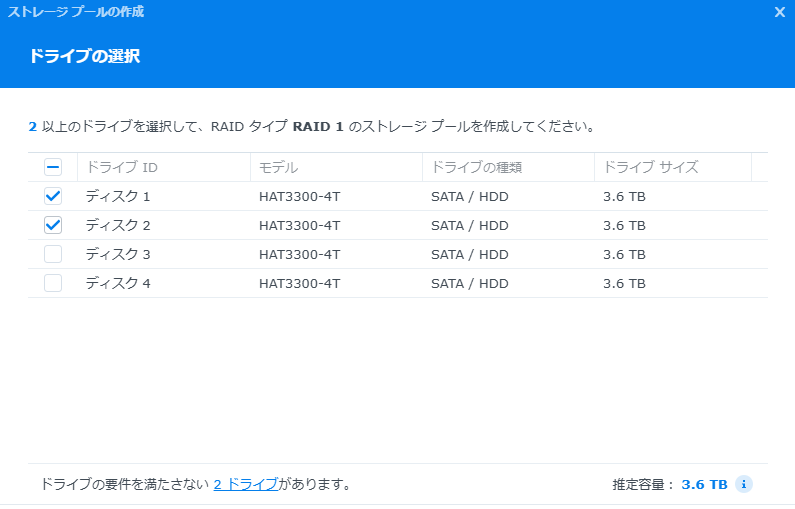 Synologyの4ベイのNASが手に入ったのでRAID機能の検証をしてみる。